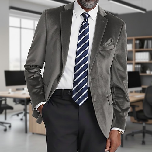 giacca blazer in velluto da uomo, colletto a lancia, classica, casual, da ufficio, tinta unita, nera, blu navy, marrone, vestibilità su misura, monopetto, due bottoni