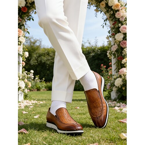 mocassini da uomo in pelle marrone: comode scarpe slip-on dal design elegante, perfette per il lavoro casual, l'ufficio, le gite del fine settimana e i matrimoni