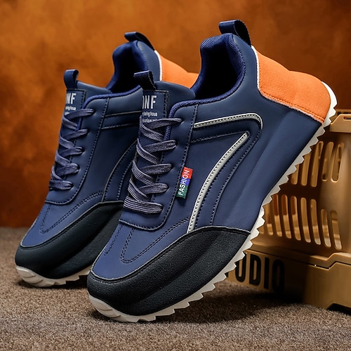 scarpe da ginnastica da uomo blu navy e marrone chiaro con suola con cuscinetto d'aria: calzature comode e alla moda per abbigliamento casual, viaggi e uso quotidiano