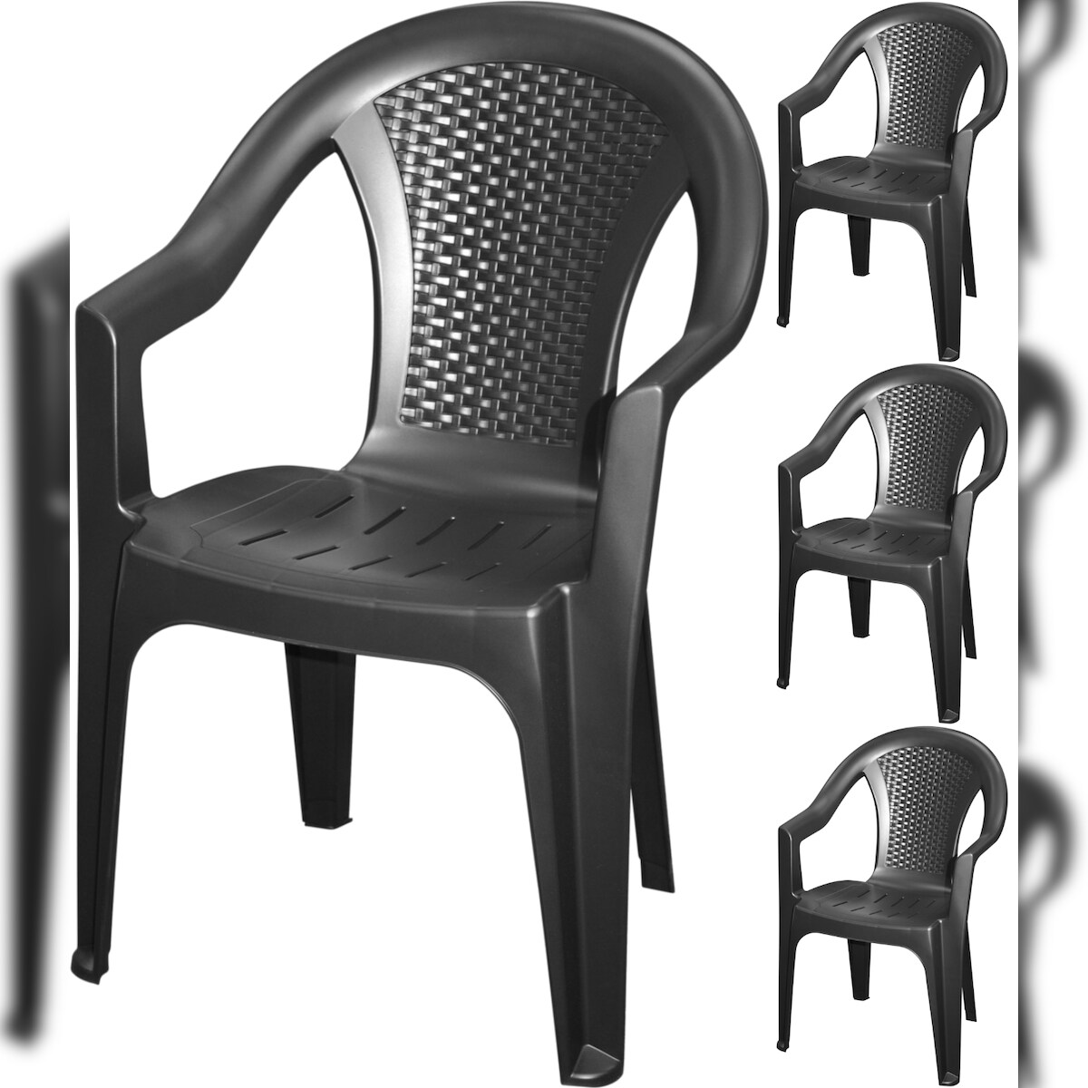 IPAE 4x Gartenstuhl Stapelstuhl Bistrostuhl Balkonstuhl Kunststoff Anthrazit 0260
