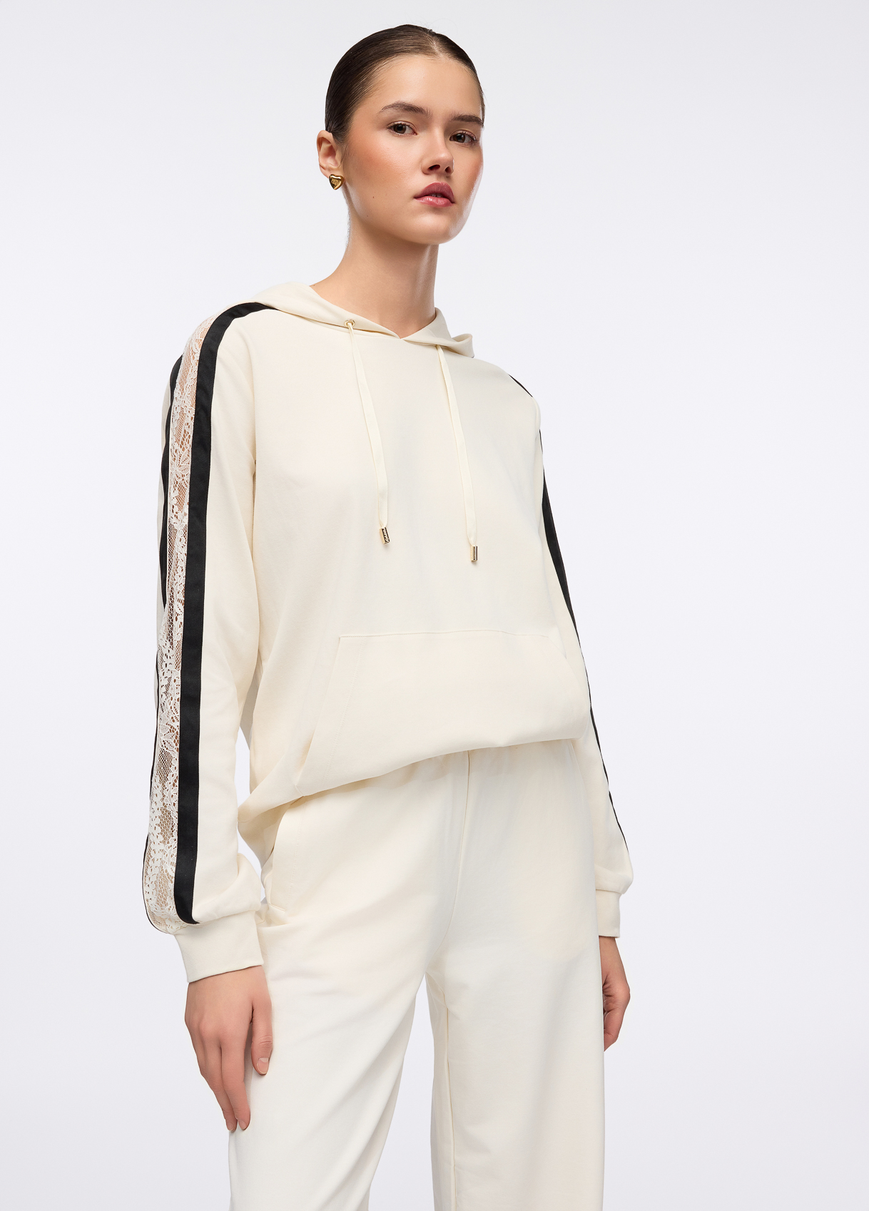 Liu Jo Sweat-shirt En Coton Avec Dentelle, Blanc, XS