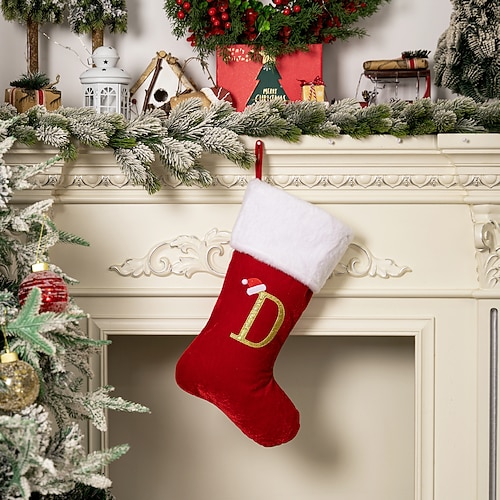 calza natalizia con lettera personalizzata, calza rossa di alta qualità in velluto dorato con lettera, calza natalizia fai da te con nome, calza regalo per la mamma per Natale