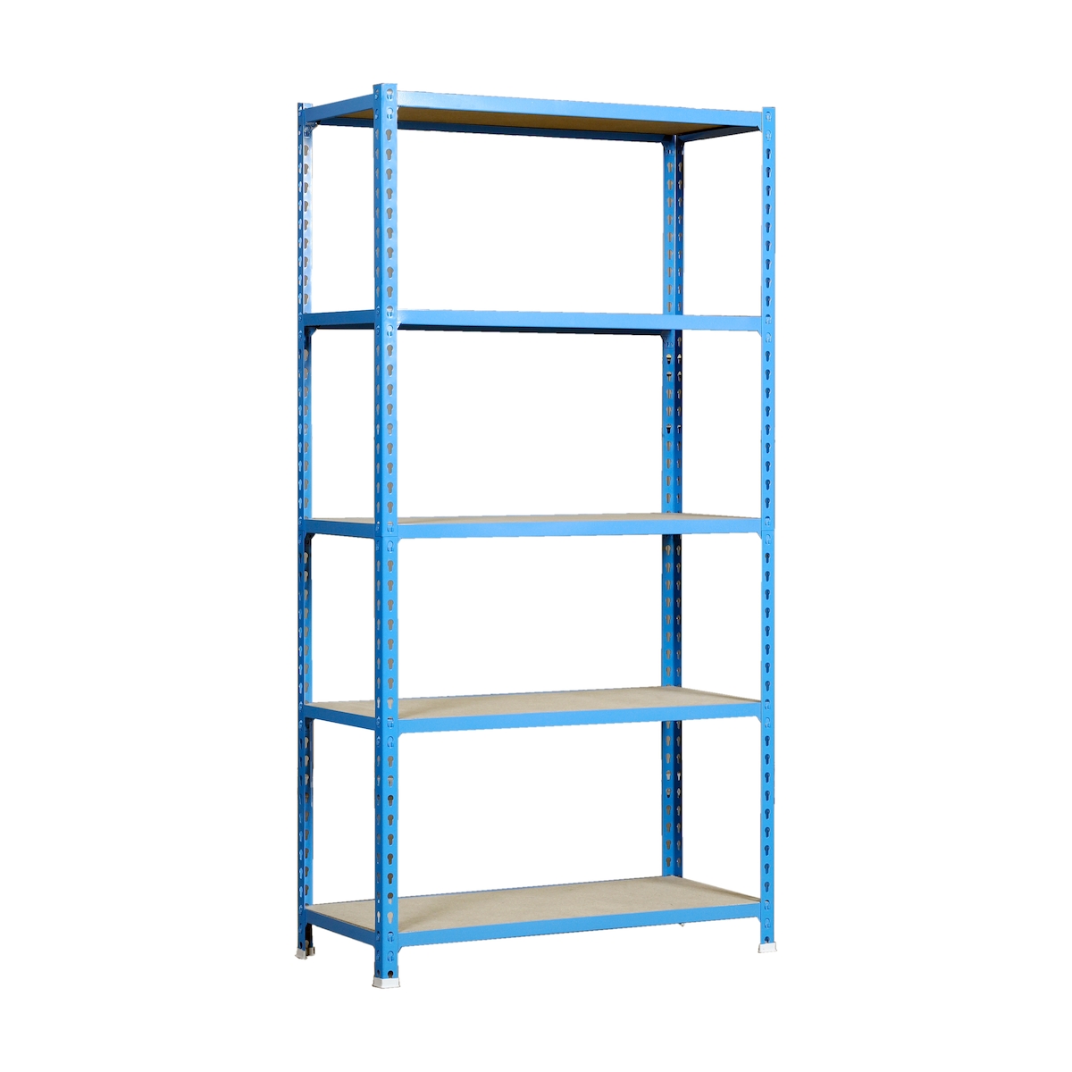 SimonRack Maderclick schraubenloses Metallregal 5 Böden. Farbe BLAU/HOLZ 2000x1200x400 mm