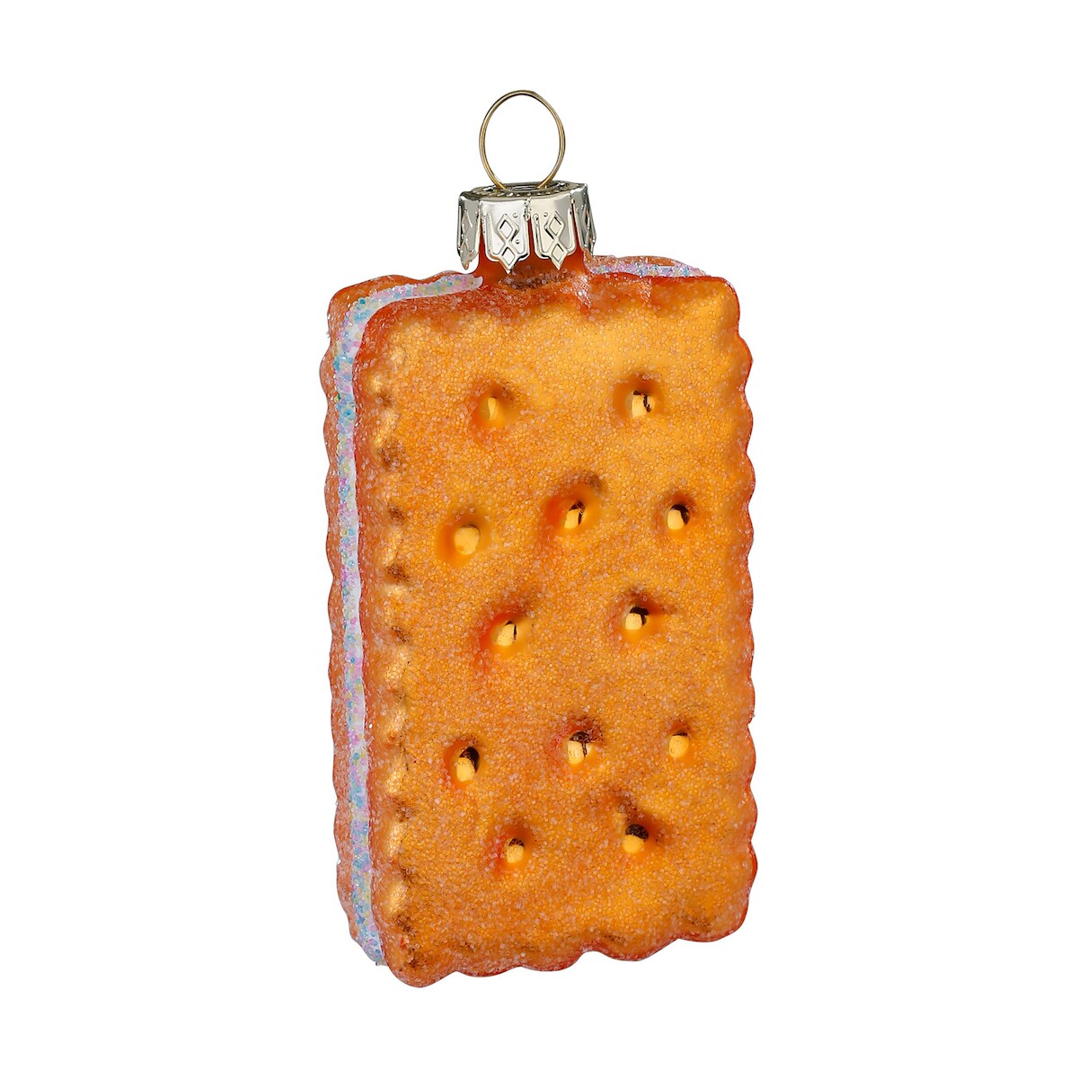 Inges Magic & Goodz Christbaumschmuck Glas 8,2cm Doppelkeks Figur zum Aufhängen - Weihnachtsbaum Anhänger Weihnachten Weihnachtsbaumschmuck Essen Gebäck Kekse Hellbraun
