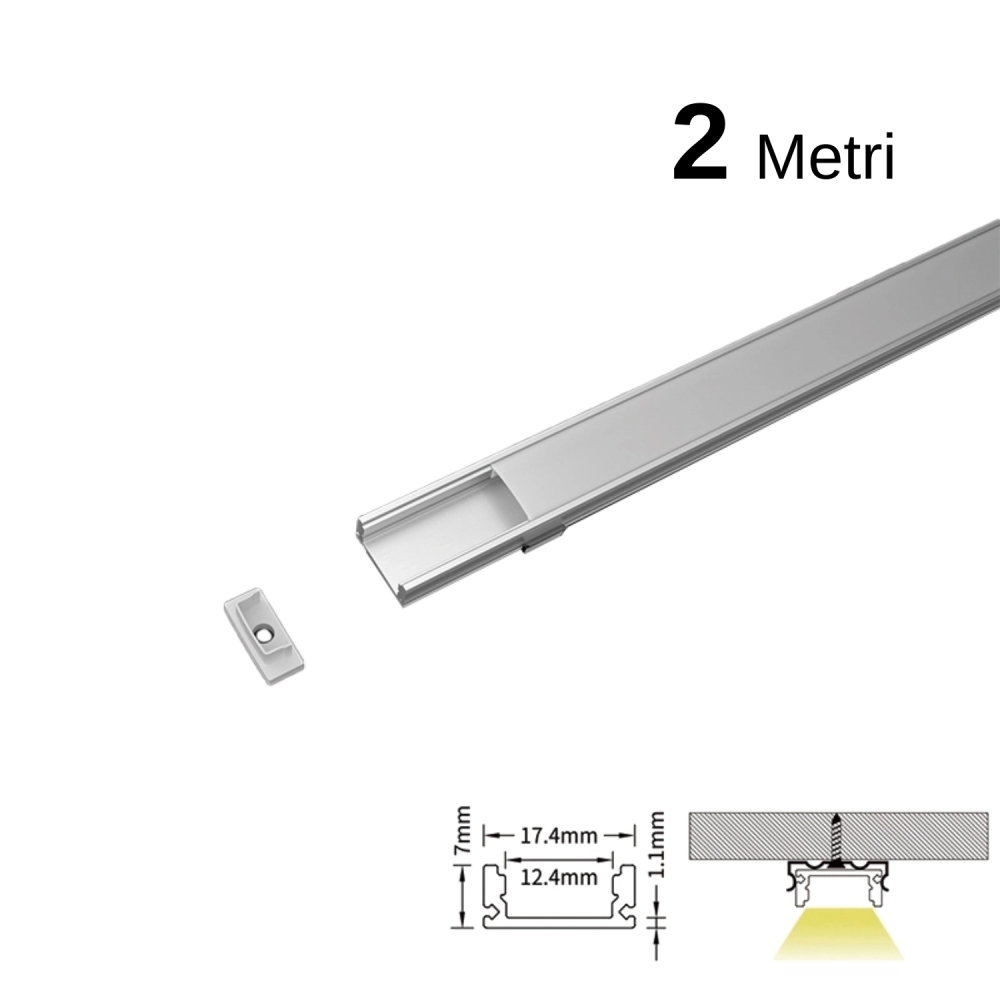 SOLOLED 2 m flaches Aluminiumprofil-Set für LED-Streifen L2000 x 17,4 x 7 mm