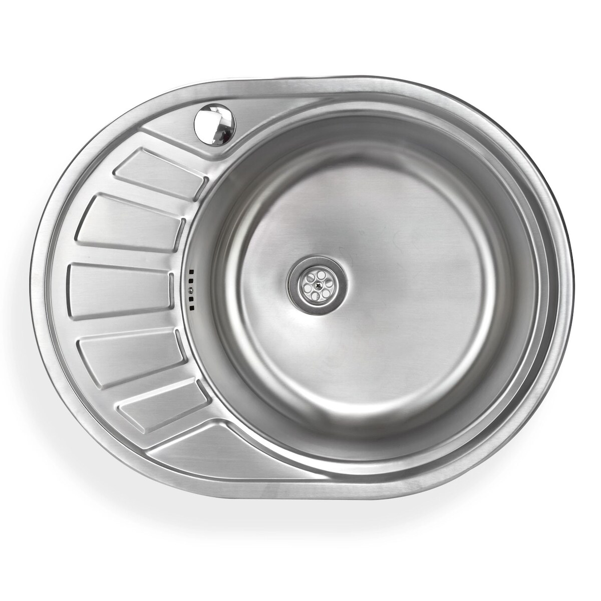 Edelstahl Spüle `Calypso SR` - Rundes Einbauspülbecken mit linksseitiger Abtropffläche