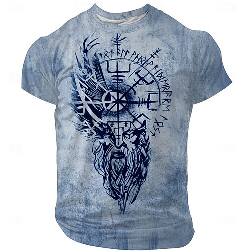 Per uomo Vichingo Maglietta Manica Corta maglietta Stampa 3D Girocollo Camicia Retrò Vintage Gotico Streetwear Casuale Quotidiano Nero Rosso Blu Estate Primavera Tutte le stagioni Abbigliamento S M L