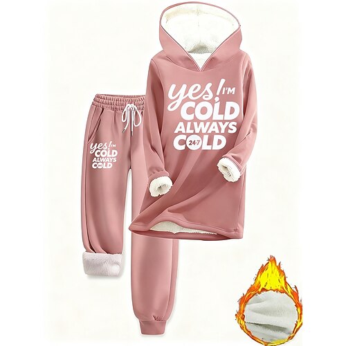 Per donna Quotidiano Elegante Set da due pezzi Tuta Set di Pantaloni Manica Lunga Con Cappuccio Grafico Lettera Coulisse Stampato Casuale Quotidiano Blu Nero Rosa Autunno Vestibilità regolare