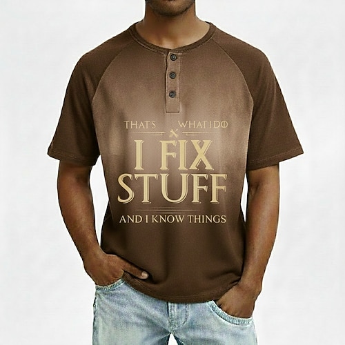 Per uomo Gergo divertente Maglia Henley Maglietta Manica Corta Moda Designer Casual Quotidiano All'aperto Primavera Primavera Autunno Tutte le stagioni Blu Marrone Blu scuro Verde Henley Maglietta