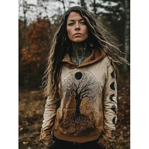 Per donna Felpa con cappuccio Tribale Vintage Casual Manica Lunga Con Cappuccio Top Regolari Casuale Sportivo Marrone chiaro Grigio Primavera Autunno Inverno