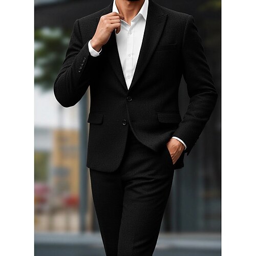 Uomo Matrimonio Completi Dentellato Nero Borgogna Quotidiano Affari Tinta unita Vestibilità su misura 2 pezzi Monopetto a un bottone