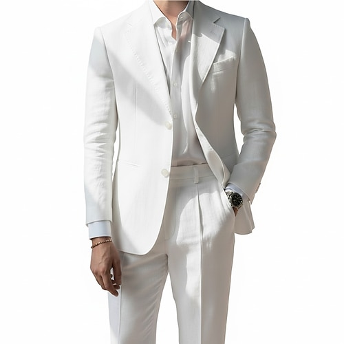 Uomo Casuale Matrimonio in Spiaggia Completi in Lino Bavero classico Nero Bianco Moda Festa Tinta unita Vestibilità su misura 2 pezzi Monopetto Due Bottoni