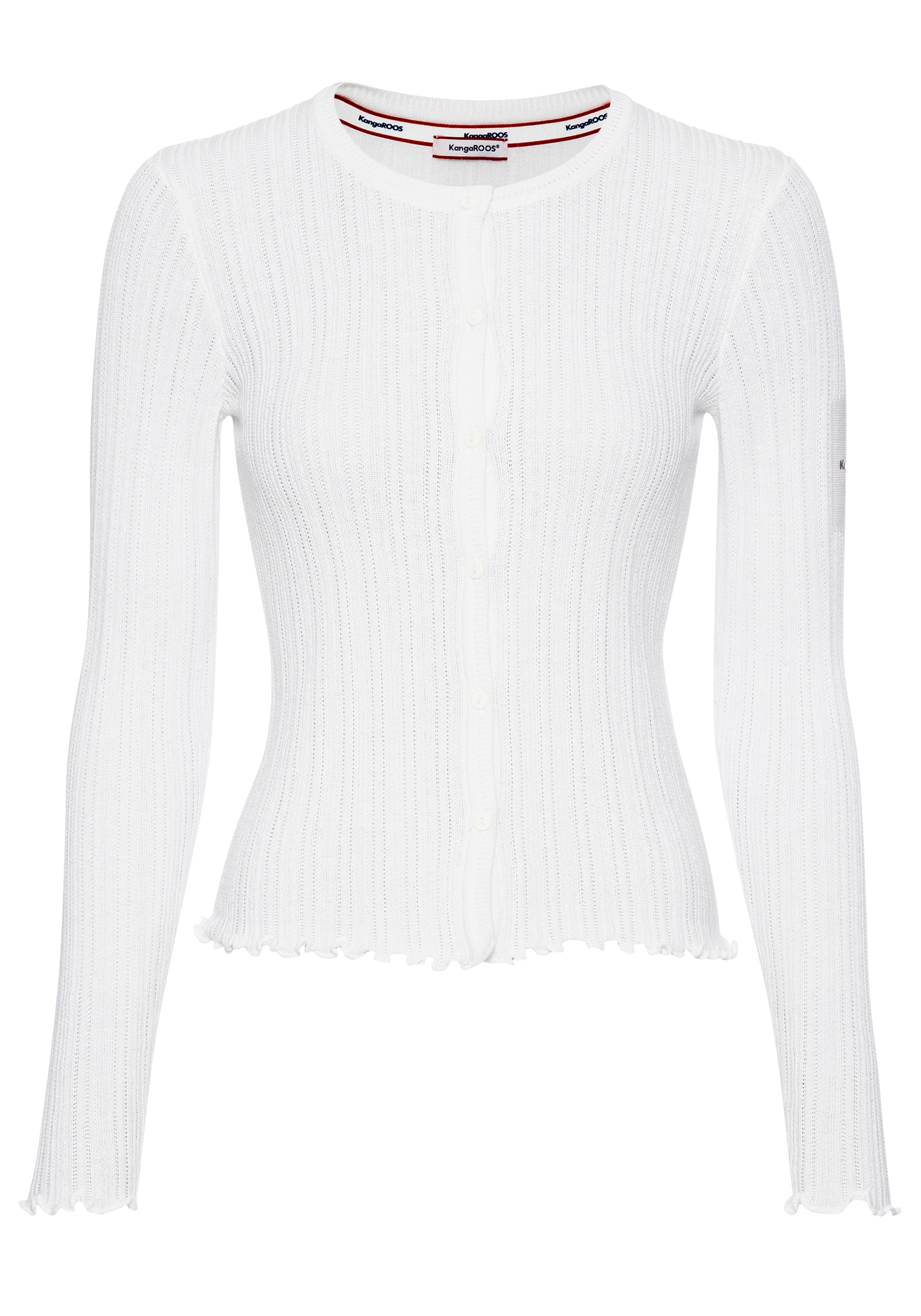 Kapuzenpullover KANGAROOS, Damen, Gr. 40/42, weiß (blau, weiß, meliert), Rippstrick, Obermaterial: 50% Baumwolle, 50% Polyacryl, kontrastfarbene Details, meliert, figurbetont hüftbedeckend, Rippbündchen mit Daumenlöchern, Pullover Kapuzenpullover, im fein