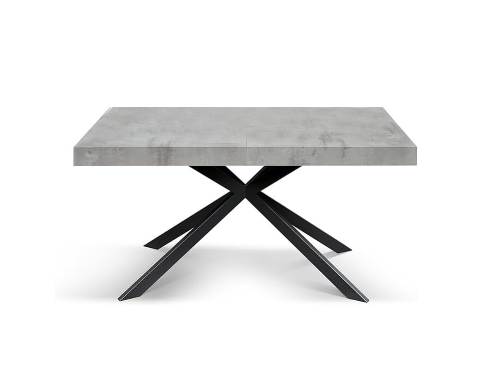 Tavolo legno, finitura cemento,base X antracite, allungabile 140x90