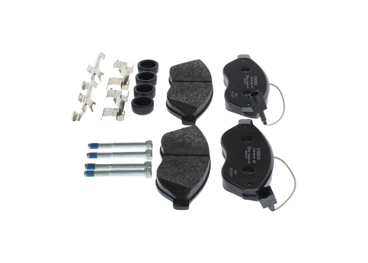 BOSCH Bremsbelagsatz, Scheibenbremse 0 986 494 591 vorne rechts links mit Feder für ALFA ROMEO PEUGEOT FIAT CITROËN LANCIA 77366014 1617273980 1611457