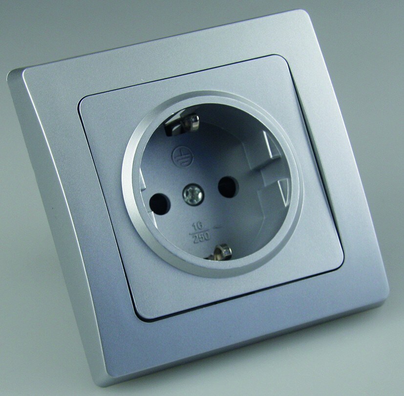 ChiliTec DELPHI Schutzkontakt-Steckdose, silber 250V AC / 16A, inkl. Rahmen, Klemmanschluss