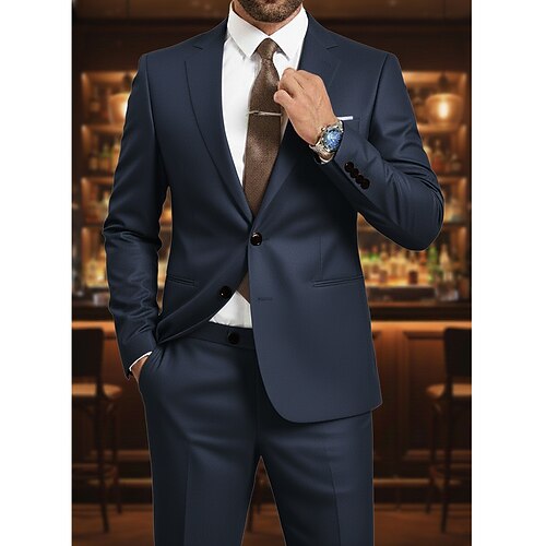 Uomo Matrimonio Casuale Abiti da lavoro Bavero classico Nero Blu scuro Formale Tinta unita Vestibilità su misura 3 pezzi Monopetto Due Bottoni