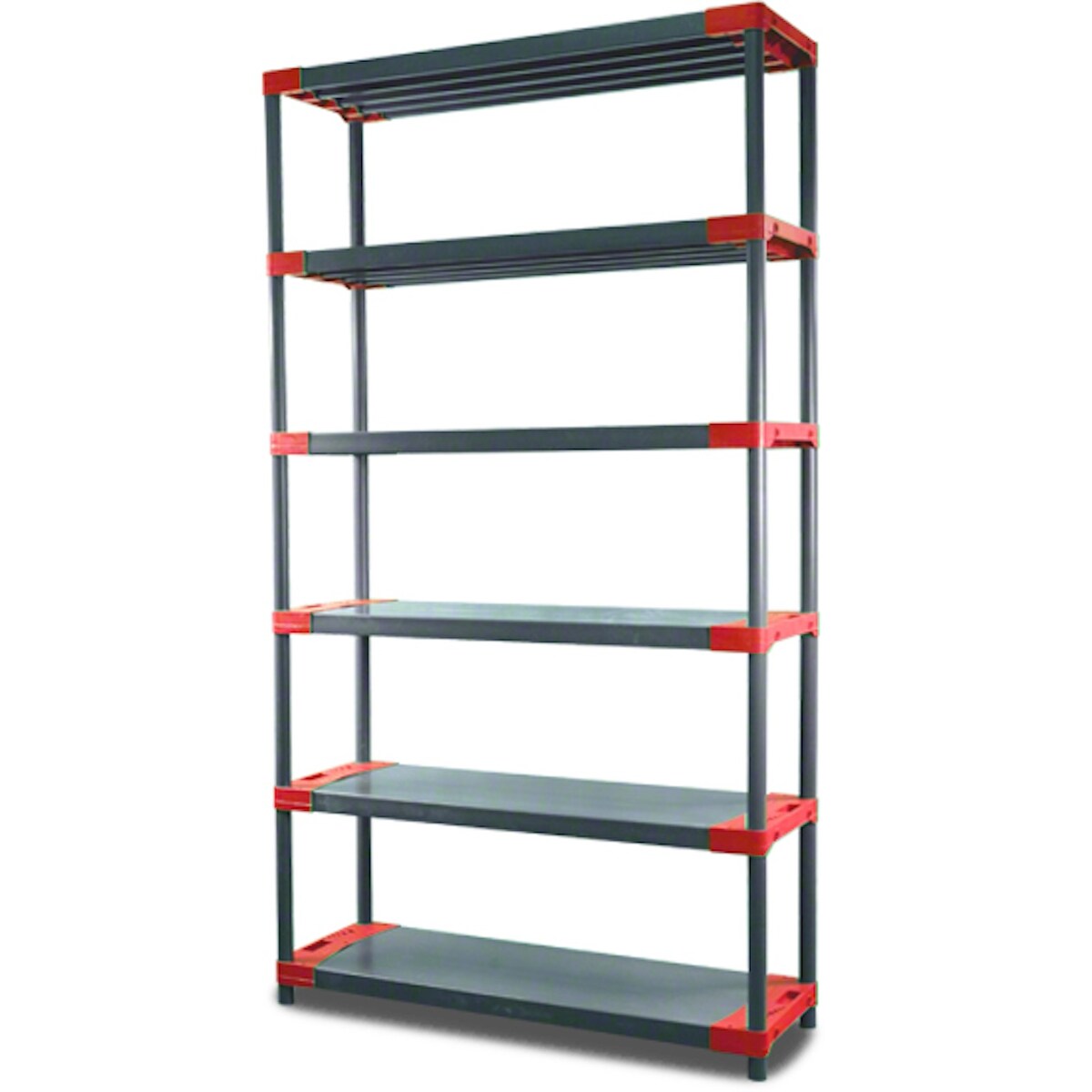 PROREGAL Kunststoffregal GREY BEAR Extra-Tall, HxBxT 220x100x46cm, Fachlast 120kg, Grau-Rot Kunststoff-Regal Euro-Regal Stecksystem Lagerregal