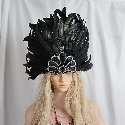 Carnival 2026 Accessori Samba del Carnevale di Rio Copricapo di Piume da Carnevale per Donne - Copricapo Costumizzato Blu e Verde Paillettes - Costume per Festival Brasiliano