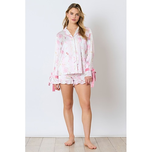 pigiama da donna, 2 pezzi, colore puro, moda, semplice, comfort, festa di san patrizio, strada, uscite, pile, caldo, regalo, senza maniche, con ferretto a V, top con spalline, basic, autunno,