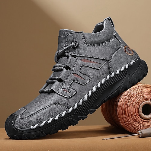 scarpe da trekking da uomo con tomaia in similpelle resistente e suola robusta: comode sneakers con lacci per l'uso quotidiano e per le avventure