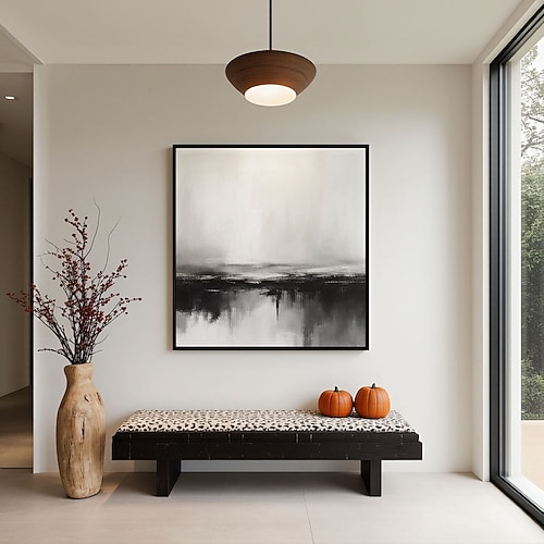 dipinto a mano astratto dipinto a olio in bianco e nero orizzonte monocromo nebbioso foresta scura dipinto paesaggio astratto olio su tela