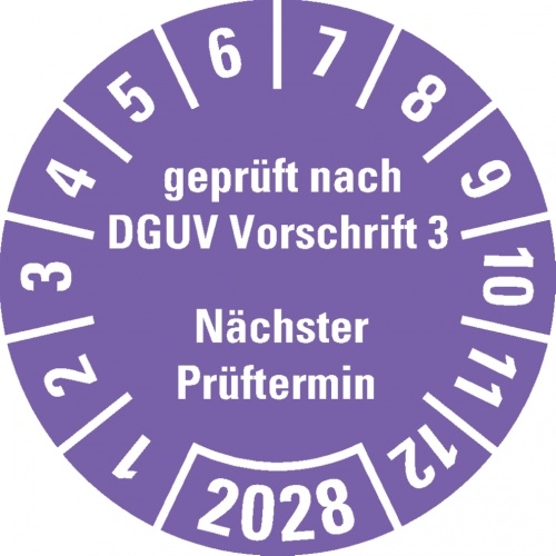 Dreifke® Prüfplakette gepr.n.DGUV Vorschr.3 NP 28, violett, Dokufolie, Ø 25mm, 500 Stk.