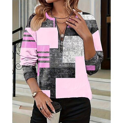 Per donna Felpa Pullover Felpe con cerniera Geometrico Blocco di colori Moda Casual Manica Lunga Girocollo Top Regolari Streetwear Abbigliamento Quotidiano Casuale Con zip Patchwork Rosa chiaro Verde