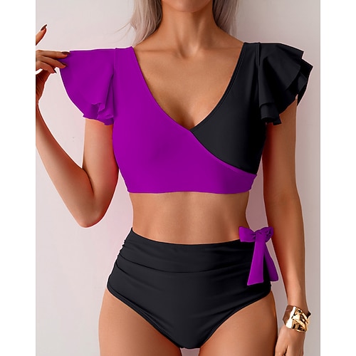 Per donna Costumi da bagno Due pezzi Birichino Costume da bagno Arricciato Patchwork Senza schiena Vacanza Abbigliamento da Spiaggia Blocco di colori Scollo a V Senza Maniche Costumi da bagno
