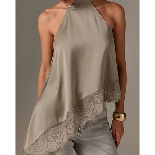 Per donna Canotta Blusa Semplice Elegante Moderno Spiaggia Senza Maniche All'americana Top lunghi Quotidiano Ferie Uscire Orlo asimmetrico Bordo in pizzo Nero Vino Marrone Beige Grigio Estate