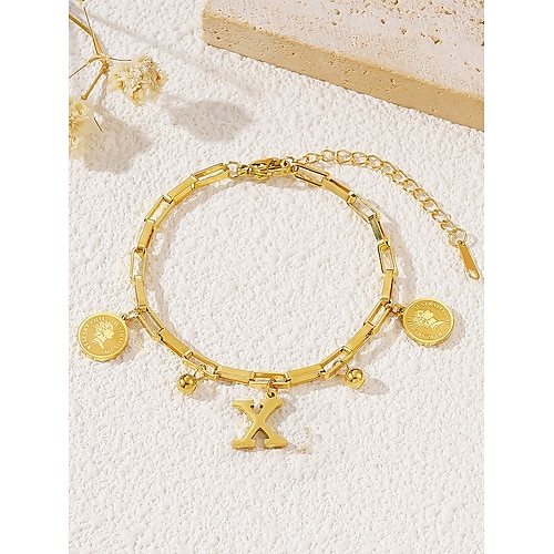 Bracciale da donna placcato in oro con lettere dell'alfabeto, ciondoli a forma di moneta e pallina, catena regolabile, elegante regalo di Natale per lei, accessorio di gioielleria personalizzato