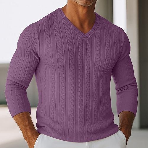 Per uomo T-shirt da uomo in maglia a costine con scollo a V Maglietta a Maglia a Coste Maglietta Manica Lunga Scollo a V Estate Primavera Autunno Tinta unica Semplice Jacquard Moderno Casual