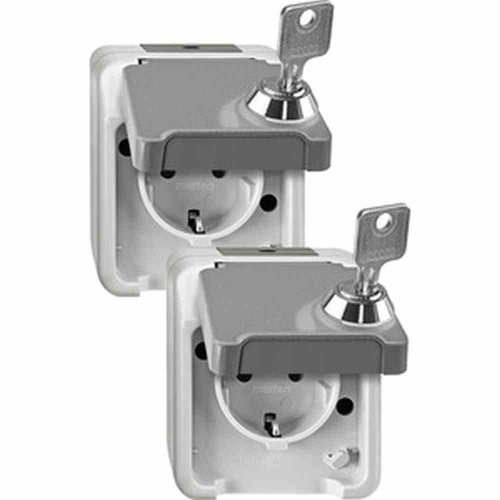 Merten AQUASTAR Steckdose, 1f, lichtgrau, matt, Aufputz, horizontal/vertikal, mit Klappdeckel, IP44, Komplettgehäuse