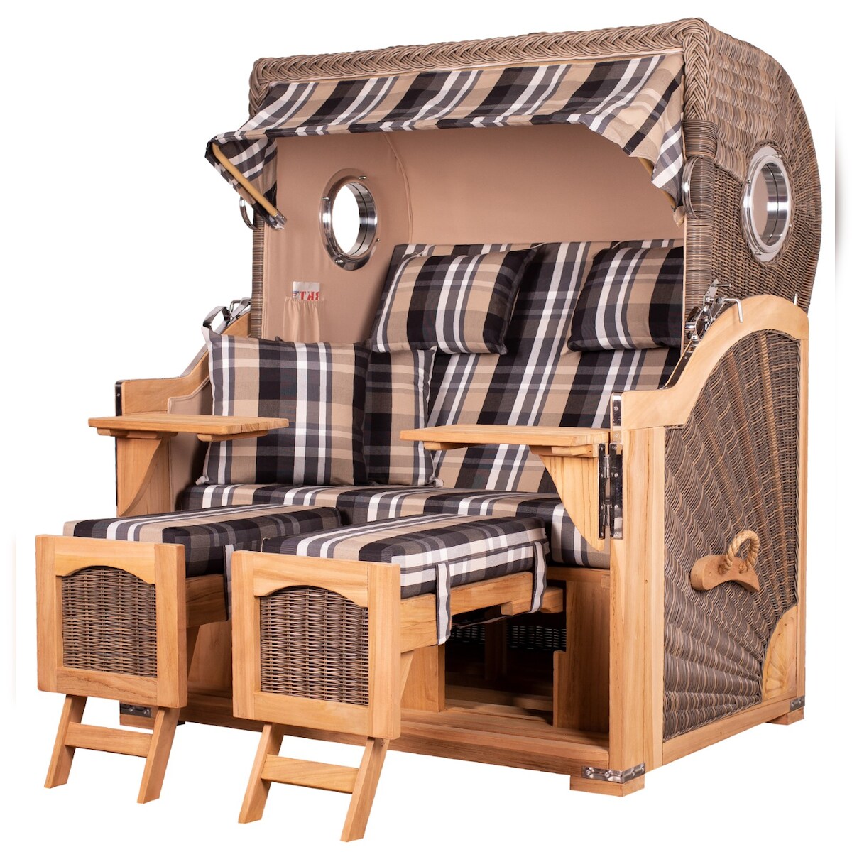 Mr. Deko Strandkorb - bene living - Borkum XL Teak Bullauge - PE grau - Modell 506 - 2,5-Sitzer inkl. Liftersystem