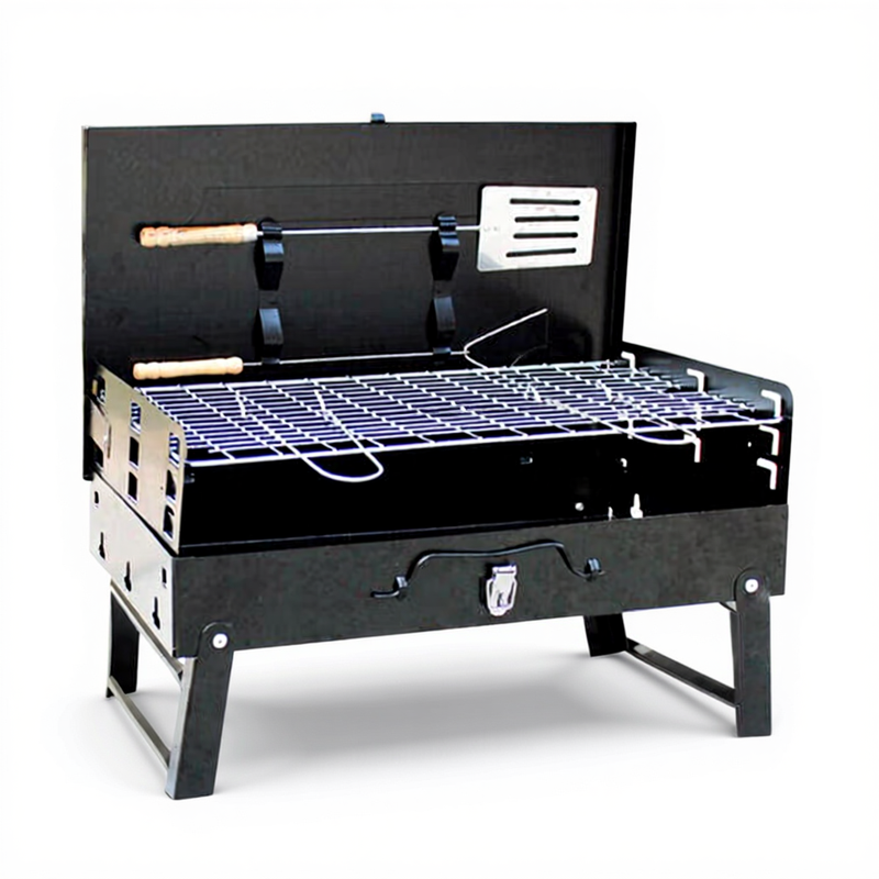 Huacan Tragbarer Tisch-Grill (BBQ) – faltbar, für Outdoor-Kochen, Frühling, Camping, Picknicks, Strand, schwarz, mit Werkzeugaufbewahrungsbrett