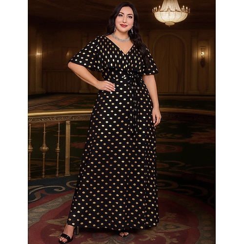 Anni Ruggenti Anni 1920 Abito da cocktail Lunghezza alla caviglia Vestito Abiti Abito da Ballo Maniche corte Il grande Gatsby Taglie Forti Invitato al matrimonio Frangia con nappe Nappa Scollo a V