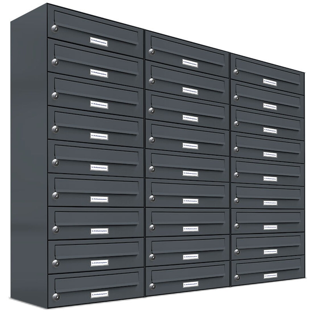 AL Briefkastensysteme 27 Fächer Premium Wand Briefkasten Anlage in RAL 7016 Anthrazit Grau, Post A4, robust, wetterfest, Artikelnummer: 132P27EA3P7016