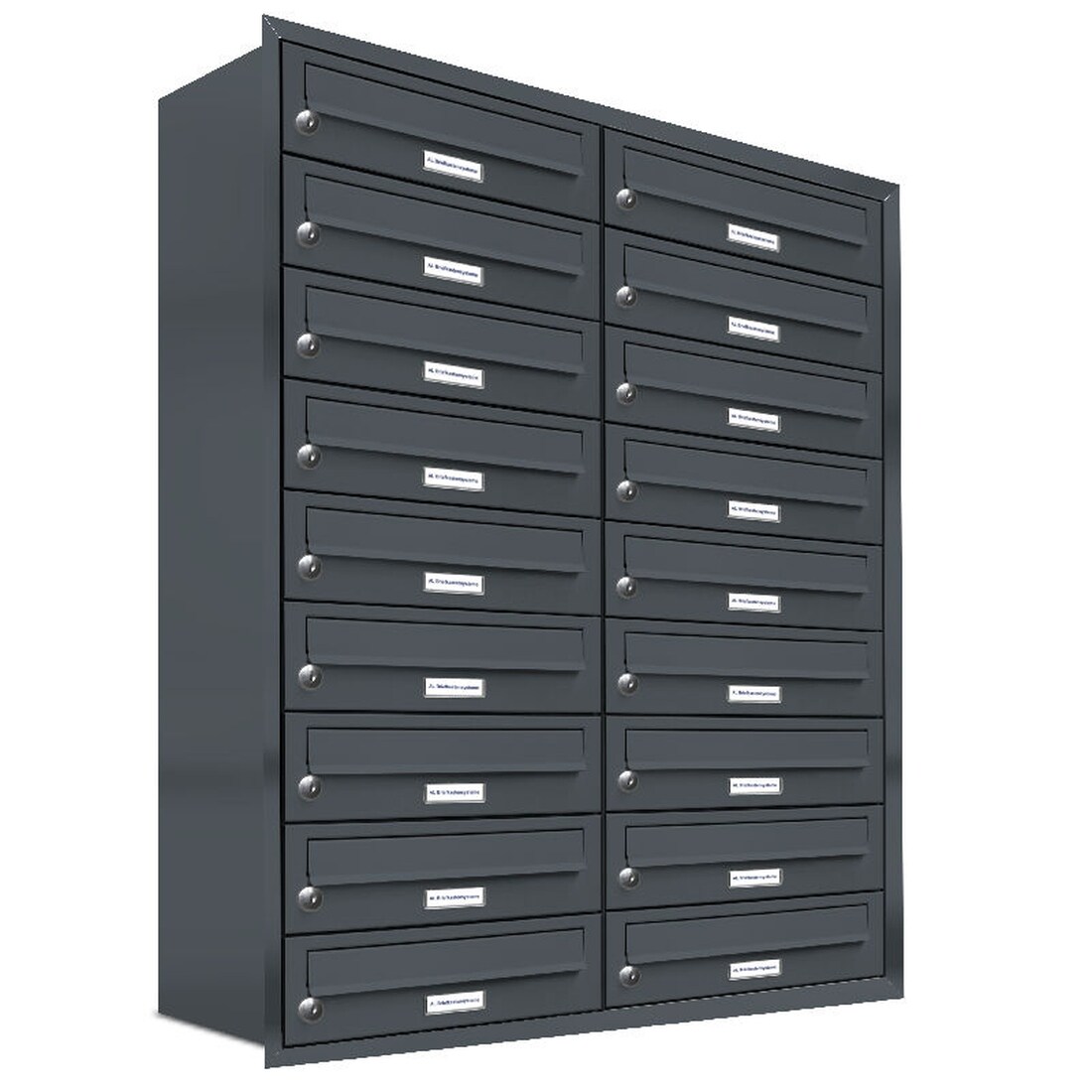 AL Briefkastensysteme 18 Fächer Premium Unterputz Briefkasten Anlage RAL 7016 Anthrazit Grau, Post A4, modern, wetterfest, Artikelnummer 132P18U2P7016