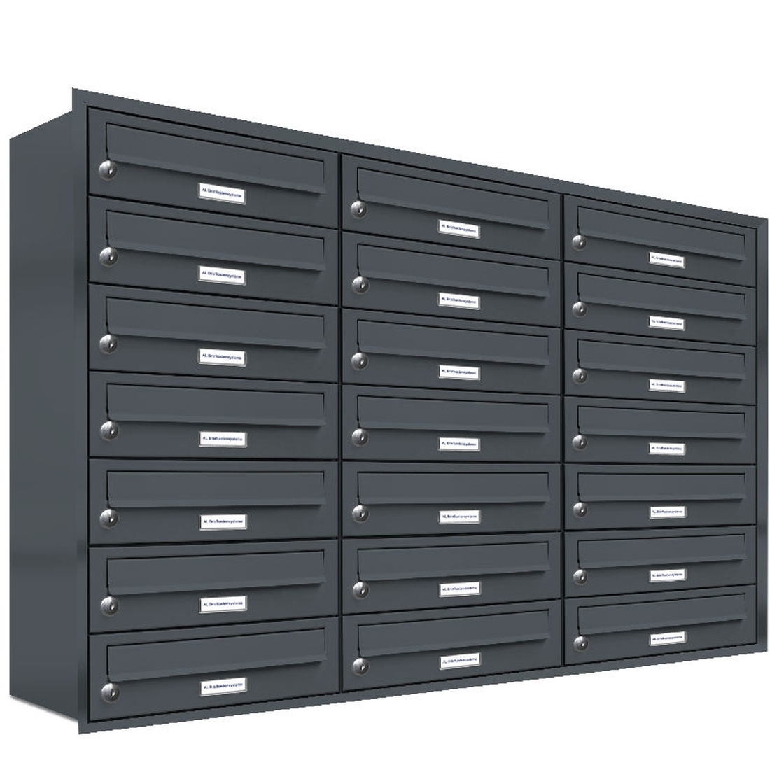 AL Briefkastensysteme 21 Fach Premium Unterputz Briefkasten Anlage RAL 7016 Anthrazit Grau, Post A4, modern, wetterfest, Artikelnummer: 132P21U3P7016