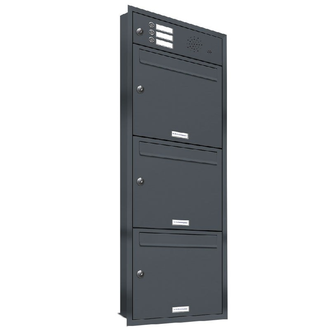 AL Briefkastensysteme 3 Fächer Premium Unterputz Briefkasten Anlage RAL 7016 Anthrazit, für Post A4, robust, wetterfest, Artikelnummer: 331P3U1KSP7016