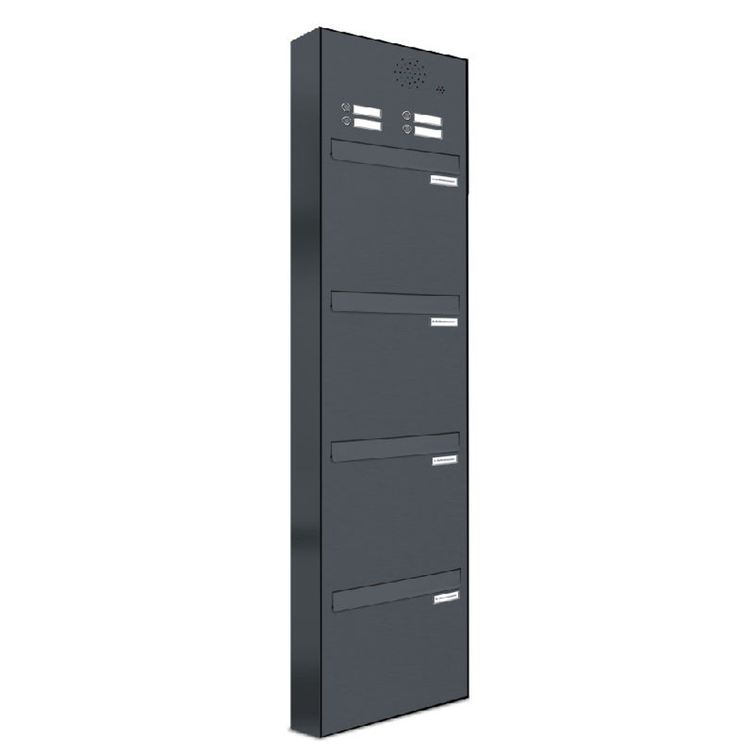 AL Briefkastensysteme 4 Fächer Premium Durchwurf Briefkasten A4 in RAL 7016 Anthrazit Grau, Post A4, robust, wetterfest, Artikelnummer 331P4DZ1KSP7016