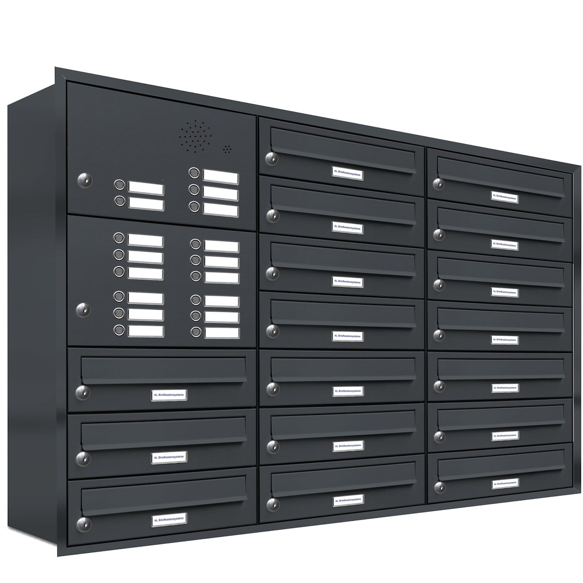 AL Briefkastensysteme 17 Fächer Premium Unterputz Briefkasten Anlage RAL 7016 Anthrazit Grau, Post A4, wetterfest, Artikelnummer: 132P17U3KSP7016