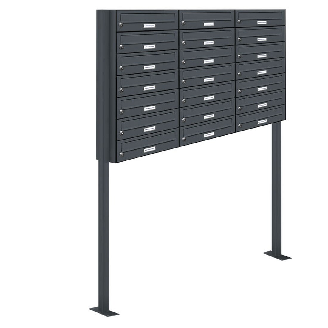 AL Briefkastensysteme 21 Fach Premium Stand Briefkasten Anlage in RAL 7016 Anthrazit Grau, Post A4, robust, wetterfest, Artikelnummer: 132P21S3P7016