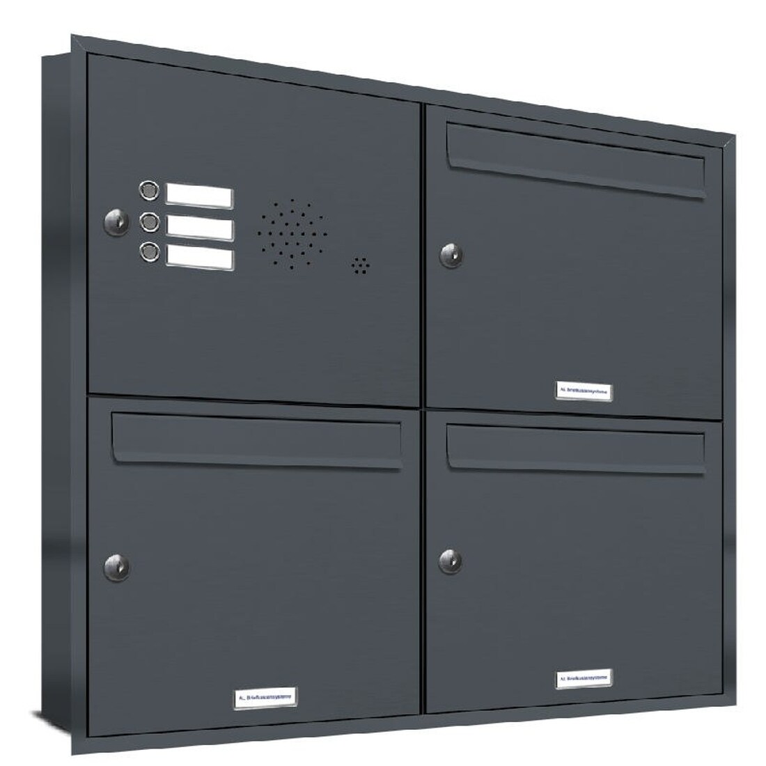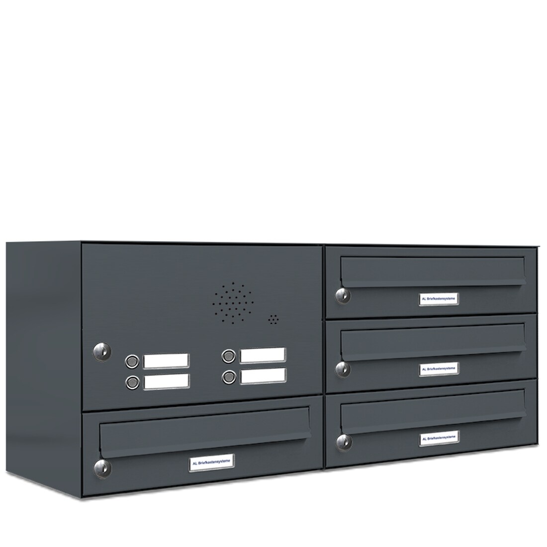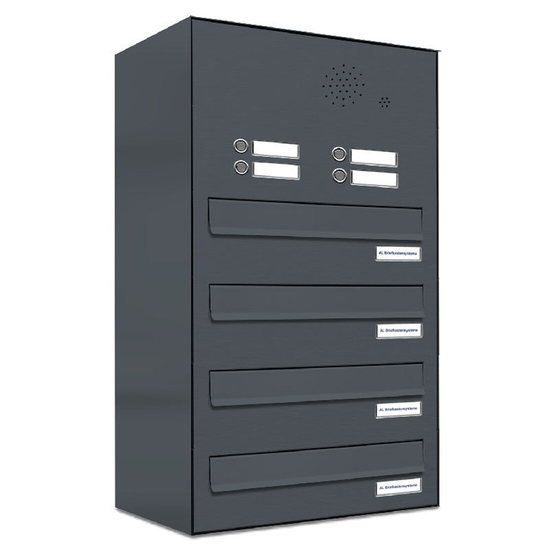 AL Briefkastensysteme 4 Fächer Premium Wand Briefkasten Anlage in RAL 7016 Anthrazit Grau, Post A4, robust, wetterfest, Artikelnummer: 132P4EA2KSP7016