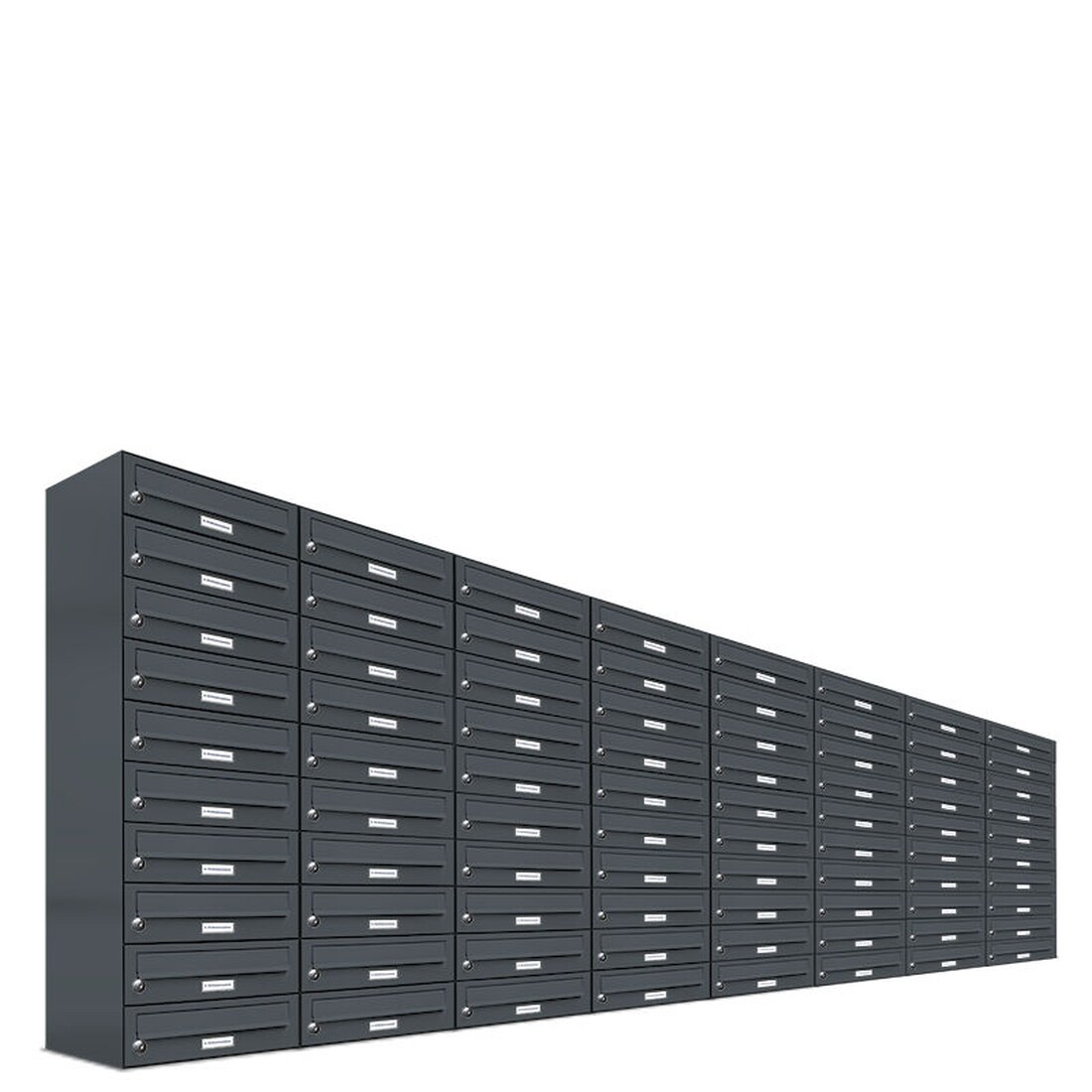 AL Briefkastensysteme 80 Fächer Premium Wand Briefkasten Anlage in RAL 7016 Anthrazit Grau, Post A4, robust, wetterfest, Artikelnummer: 132P80EA8P7016