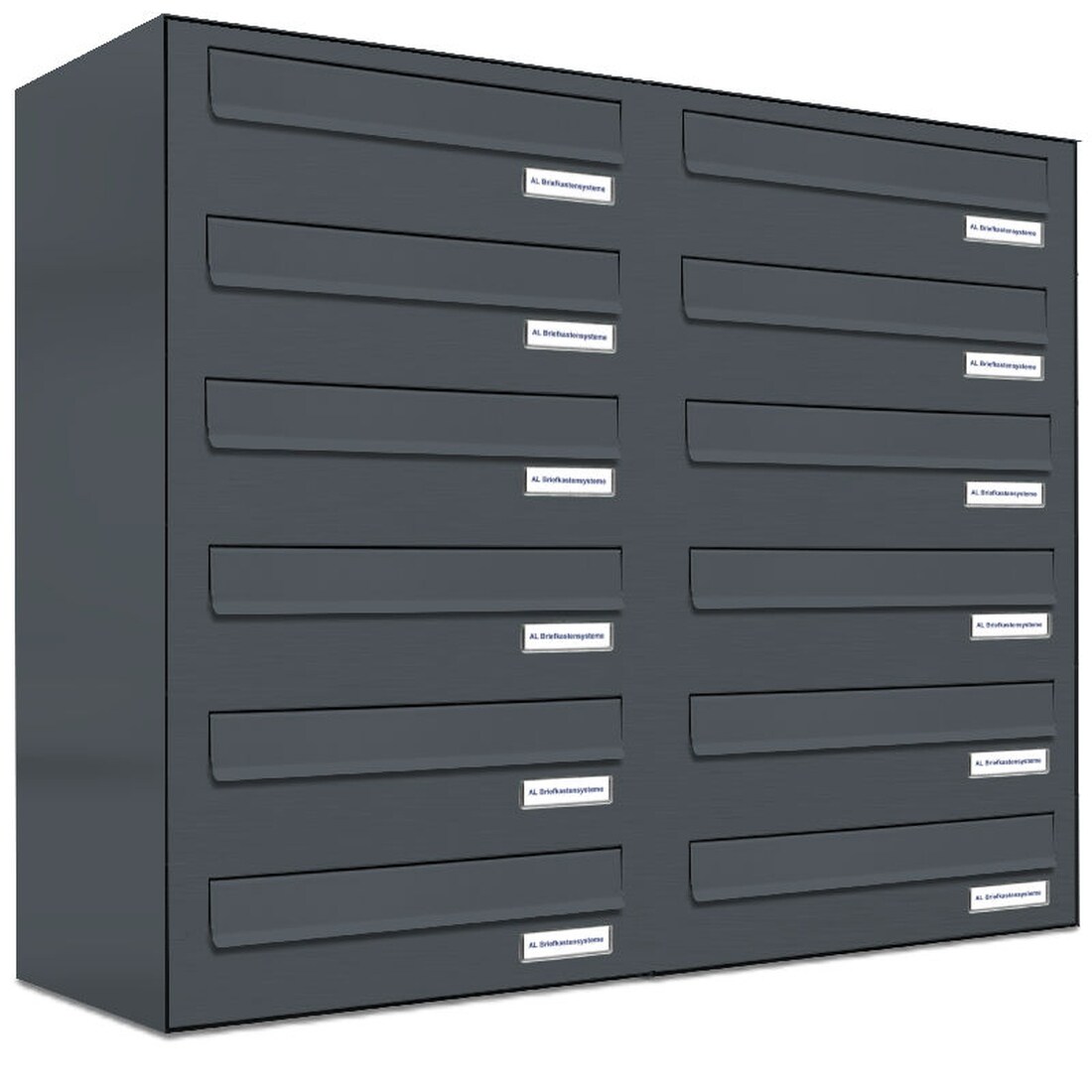 AL Briefkastensysteme 12 Fächer Premium Durchwurf Briefkasten in RAL 7016 Anthrazit Grau, Post A4, robust, wetterfest, Artikelnummer: 132P12DZ2P7016