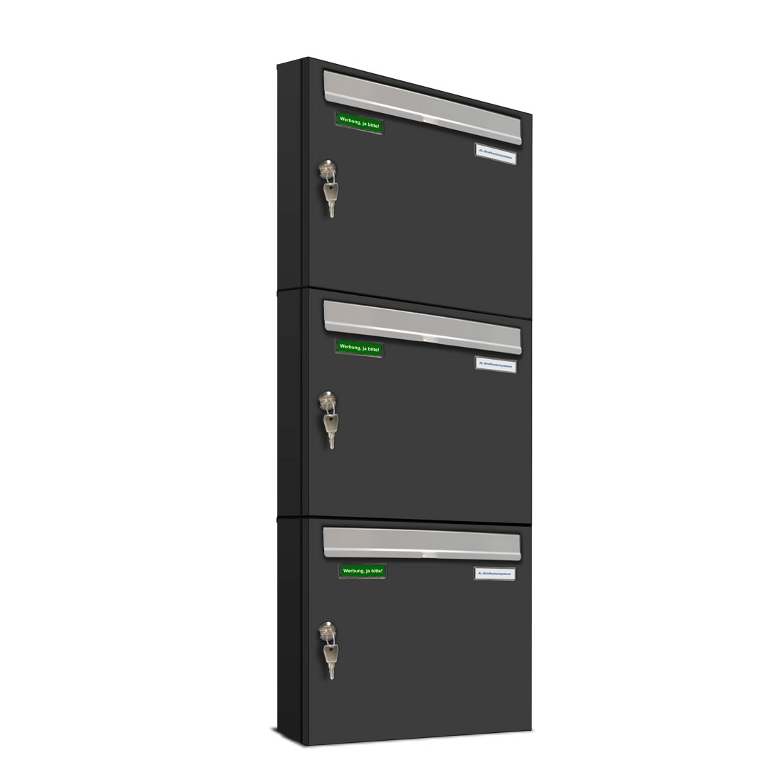 AL Briefkastensysteme 3 x Basic Wand Briefkasten in RAL 7016 Anthrazit Grau für Post A4, wetterfest, Artikelnummer: 431P3EA1P7016/9006