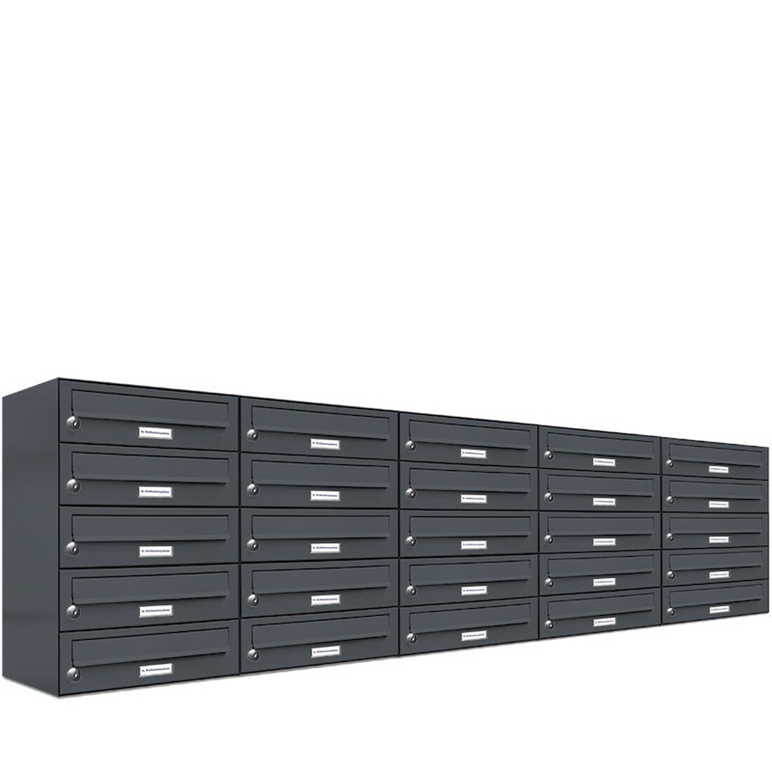 AL Briefkastensysteme 25 Fächer Premium Wand Briefkasten Anlage in RAL 7016 Anthrazit Grau, Post A4, robust, wetterfest, Artikelnummer: 132P25EA5P7016
