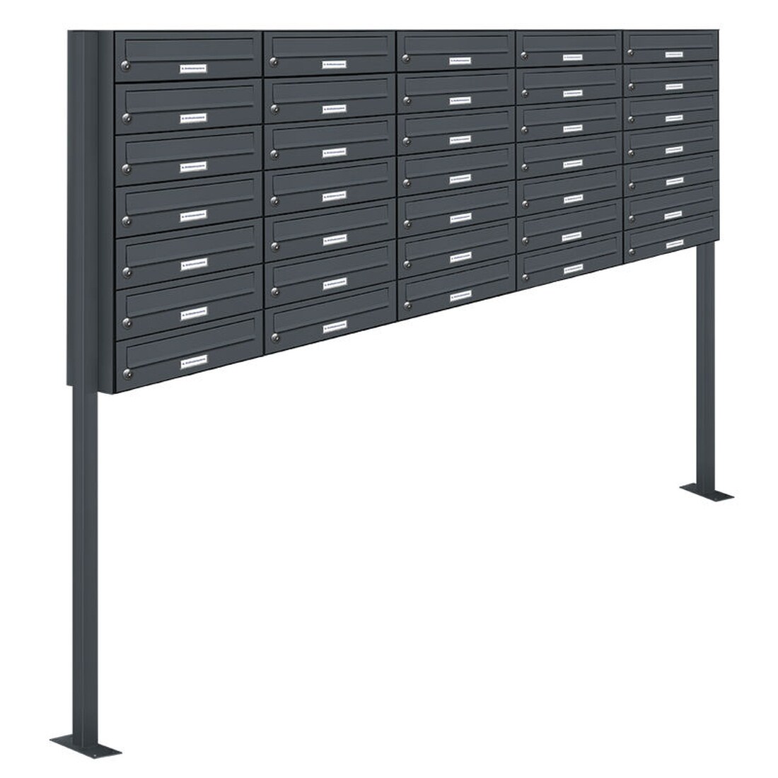 AL Briefkastensysteme 35 Fächer Premium Stand Briefkasten Anlage in RAL 7016 Anthrazit Grau, Post A4, robust, wetterfest, Artikelnummer: 132P35S5P7016