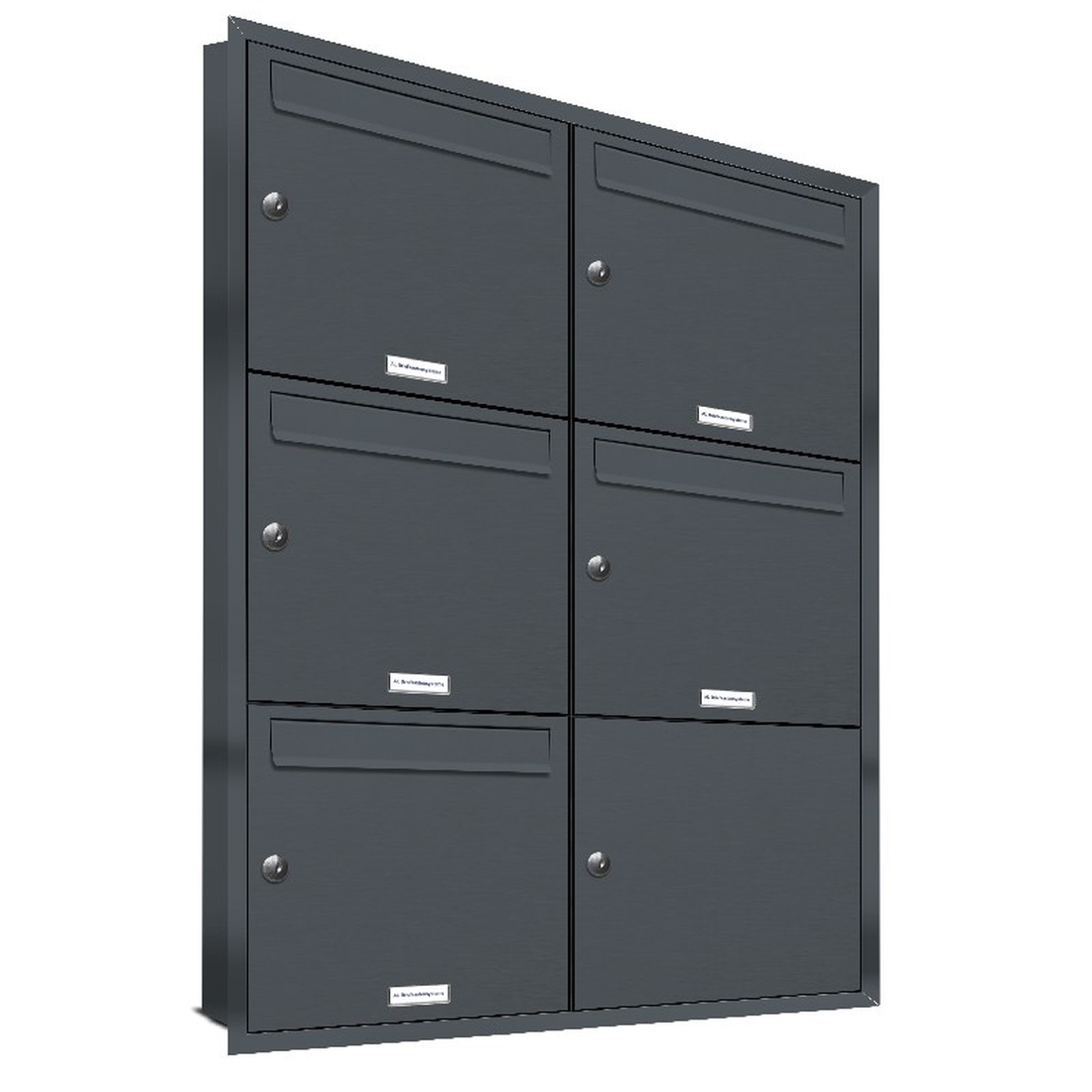 AL Briefkastensysteme 5 Fächer Premium Unterputz Briefkasten Anlage RAL 7016 Anthrazit Grau, Post A4, robust, wetterfest, Artikelnummer: 331P5U2P7016